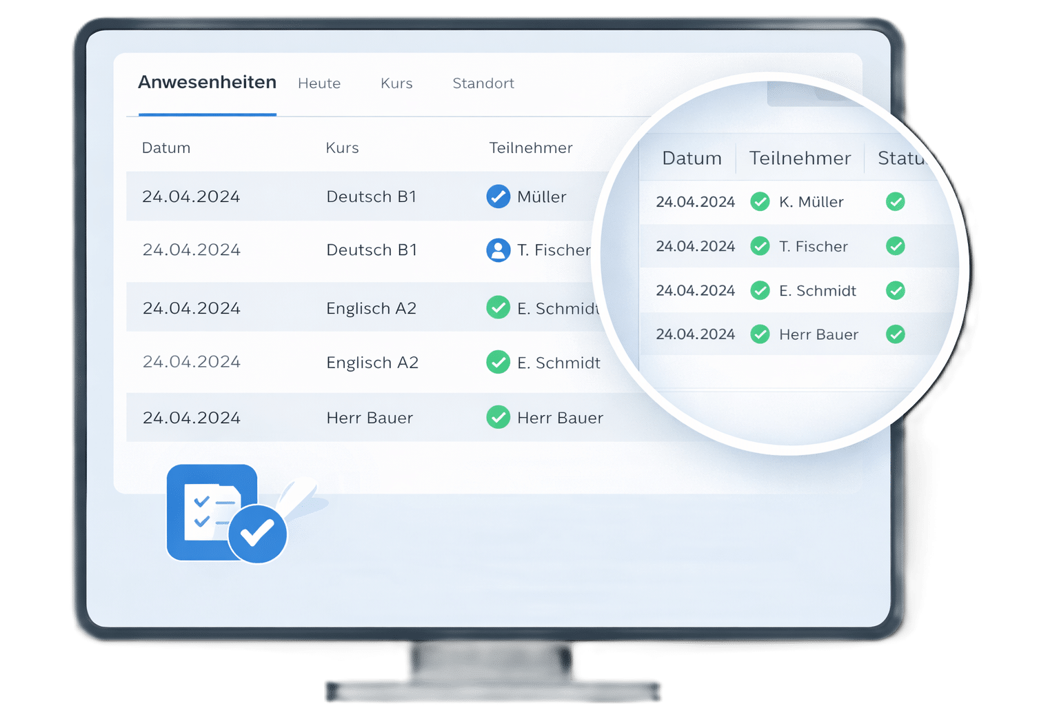 Anwesenheiten werden automatisch erfasst, eindeutig dokumentiert und direkt als Nachweise verfügbar gemacht.